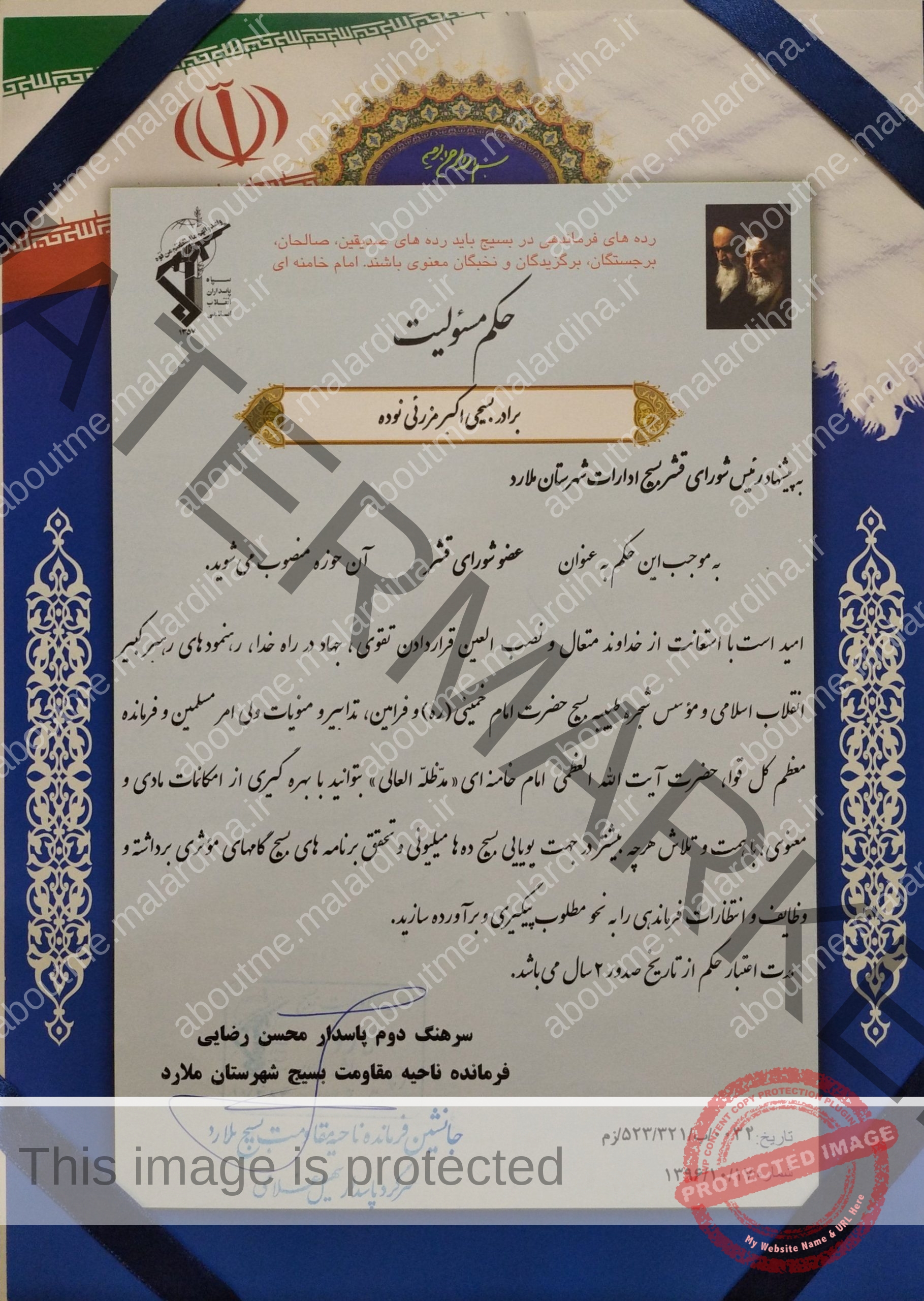 عضو شورای قشر(نخبگان) بسیج ادارات ملارد2014-2020چندین سال فعالیت بعنوان عضو ثابت شورای قشر بسیج شهرستان ملارد